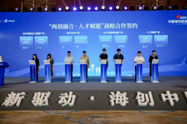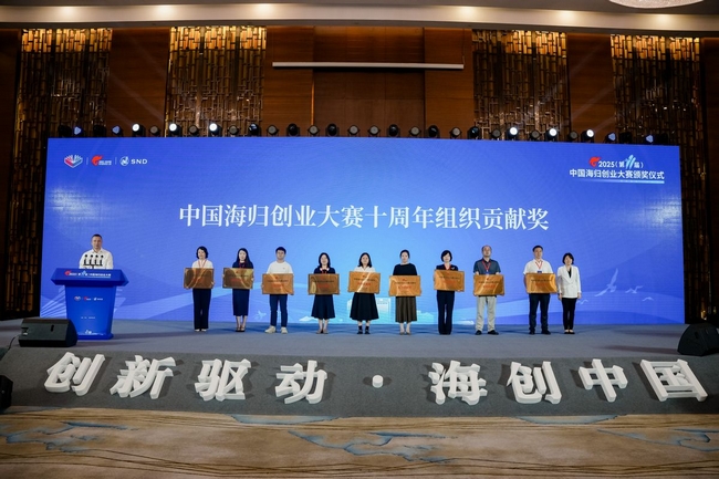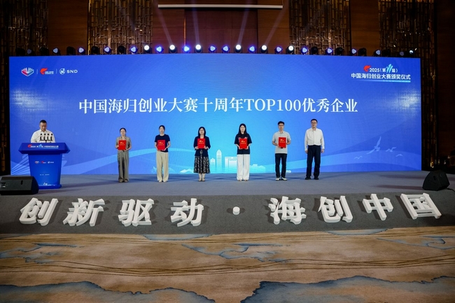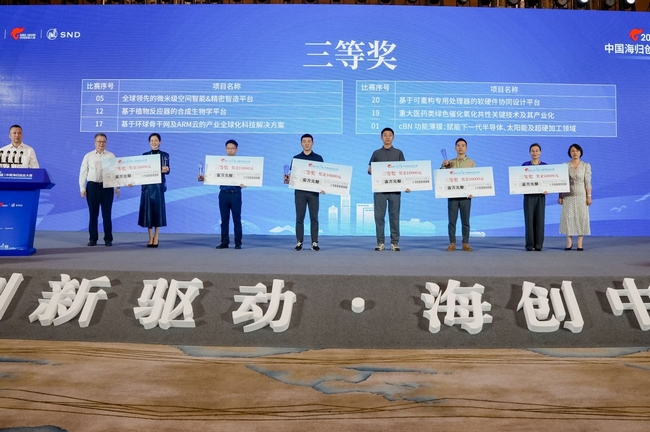 在頒獎儀式中,科技部、工信部、致公黨中央等大賽指導(dǎo)單位以及江蘇省、蘇州市有關(guān)部門領(lǐng)導(dǎo)為獲獎項(xiàng)目頒發(fā)了獎杯、獎金和證書?,F(xiàn)場還作了中國海歸創(chuàng)業(yè)大賽10周年總結(jié),全面回顧了大賽舉辦10屆以來所重點(diǎn)開展的工作和取得的成果;發(fā)布了中國海歸創(chuàng)業(yè)大賽10周年TOP100優(yōu)秀企業(yè)榜單,根據(jù)歷屆參賽企業(yè)近年來在企業(yè)成長性、科技創(chuàng)新力、行業(yè)影響力、地區(qū)貢獻(xiàn)度等方面進(jìn)行綜合評定,有海柔創(chuàng)新、青禾晶元、杉數(shù)科技、斯乾智駕、漢陽科技、識光芯科、景略半導(dǎo)體、圣德醫(yī)療、英磁新能源等100家優(yōu)秀企業(yè)入選。此外,活動還為在大賽組織服務(wù)中作出重要貢獻(xiàn)、給予推動支持的一批單位頒發(fā)了中國海歸創(chuàng)業(yè)大賽10周年特別貢獻(xiàn)獎和組織貢獻(xiàn)獎,并舉行了中國海歸創(chuàng)業(yè)大賽成果轉(zhuǎn)化基地啟動儀式及項(xiàng)目簽約儀式。